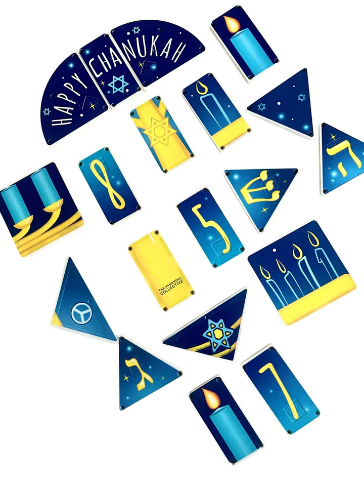 Start your familyās new holiday tradition with our Hug Chanukah Menorah made with your favourite brand of magnetic tiles!Ā The whole family will love building with this colourful magnetic Menorah set, flip over a tile each night to reveal a new Chanukah candle. The numbered tile pieces can even be used to build your very own Menorah. Our Chanukah Menorah is designed to bring families together to create and celebrate!