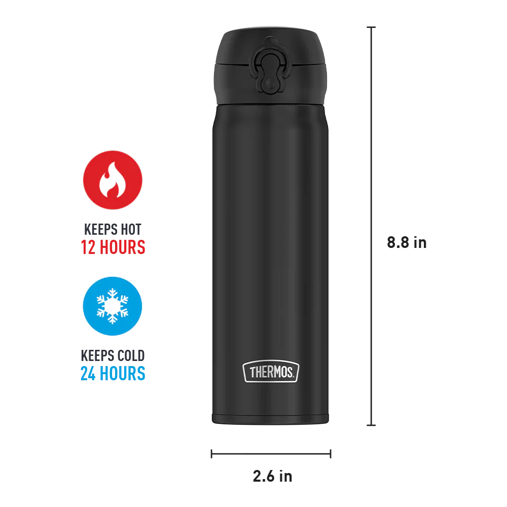 Take on the day with the Thermos® Brand 16oz Stainless Steel Direct Drink Bottle. Featuring Thermos⢠vacuum insulation technology to keep beverages hot for up to 12 hours or cold for up to 24 hours. Fill it with hot coffee for your morning commute, then switch to icy cold water in the afternoon.